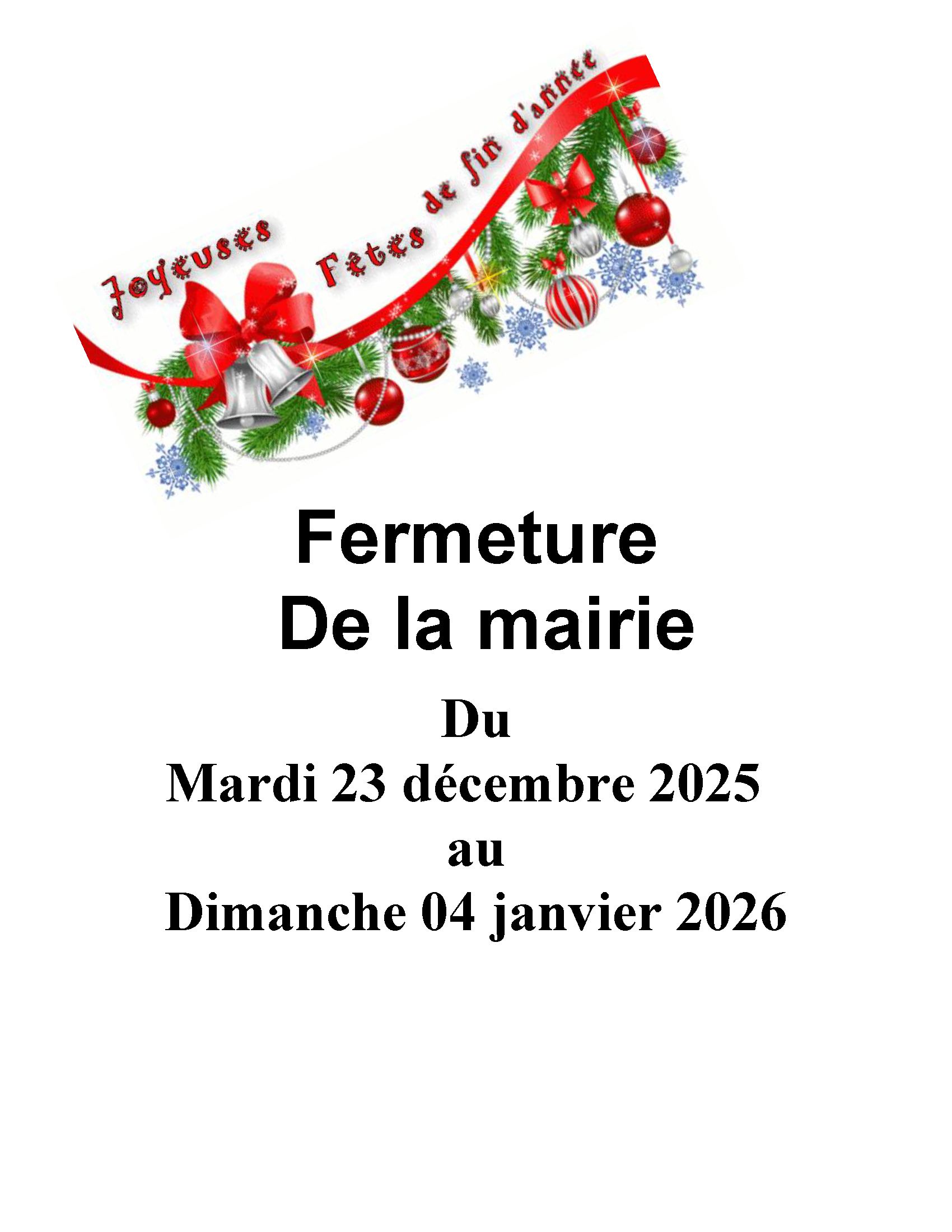 Vous êtes ici : Accueil > Fermeture de fin d'année